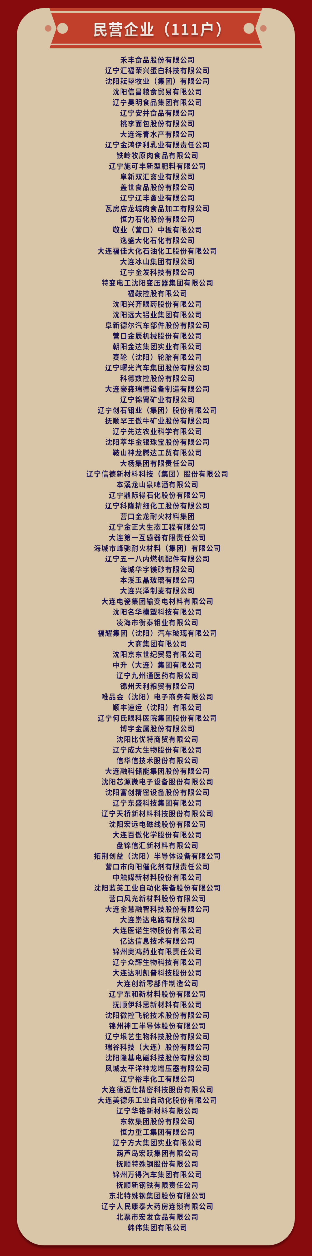 為進(jìn)一步調(diào)動(dòng)廣大企業(yè)助力遼寧全面振興的積極性、主動(dòng)性、創(chuàng)造性,提振信心、激發(fā)干勁,鼓勵(lì)和支持各類企業(yè)競相發(fā)展,省委省政府決定,對在全面振興新突破三年行動(dòng)攻堅(jiān)之年作出突出貢獻(xiàn)的241戶企業(yè)予以通報(bào)表揚(yáng)。具體名單如下。